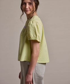 Gefertigt aus Seersucker Check, einer strukturierten Materialmischung aus Baumwolle und Polyester, bietet AlbertaM. eine gekreppte Oberfläche mit natürlichem Abstand zur Haut. Das sorgt für ein luftiges Tragegefühl – ideal an warmen Tagen oder auf Reisen. Die sanft wellige Struktur bleibt auch nach dem Waschen formstabil und pflegeleicht.