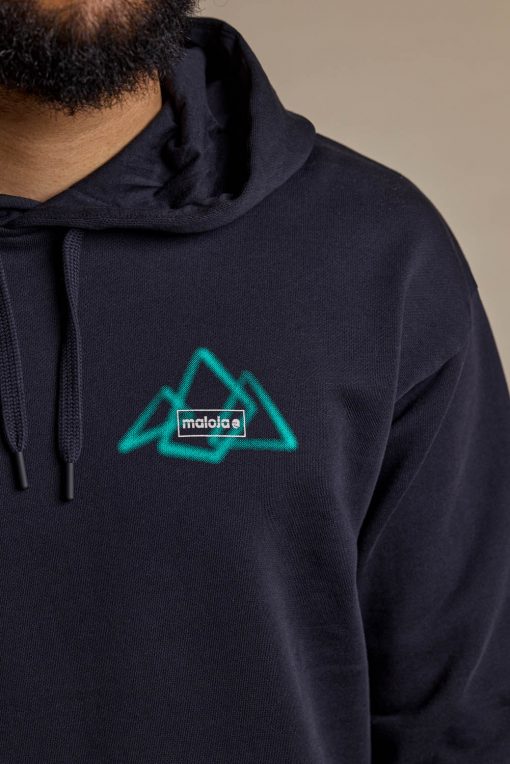 DroM. ist ein klassischer Hoodie aus 100 % Bio-Baumwolle mit einer großen Maloja-Berggrafik auf dem Rücken – ein Statement für alle, die ihre Verbindung zu den Bergen zeigen möchten.