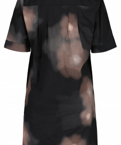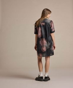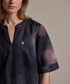 Available in two solids and two floral-inspired prints – “Bloom” and “Sunleaf” – this dress brings freshness to your wardrobe. Featuring a V-neckline with a stand-up collar, delicate ruffle details on the shoulders, and softly draped pleats at the back, it creates a flowing and relaxed silhouette. A subtle highlight: the Tagua nut button adds a conscious and natural touch.