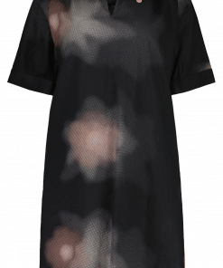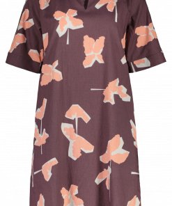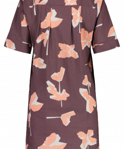 Ob in Uni oder mit floralen Allover-Prints wie „Bloom“ oder „Sunleaf“ – das Design ist verspielt und stilvoll zugleich. Der V-Ausschnitt mit Stehkragen, zarte Rüschen an der Schulterpartie und liebevoll gelegte Falten am Rücken verleihen dem Kleid eine sanfte, fließende Silhouette. Ein kleines Detail: der dekorative Tagua-Knopf sorgt für einen natürlichen Akzent.