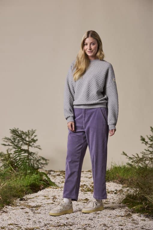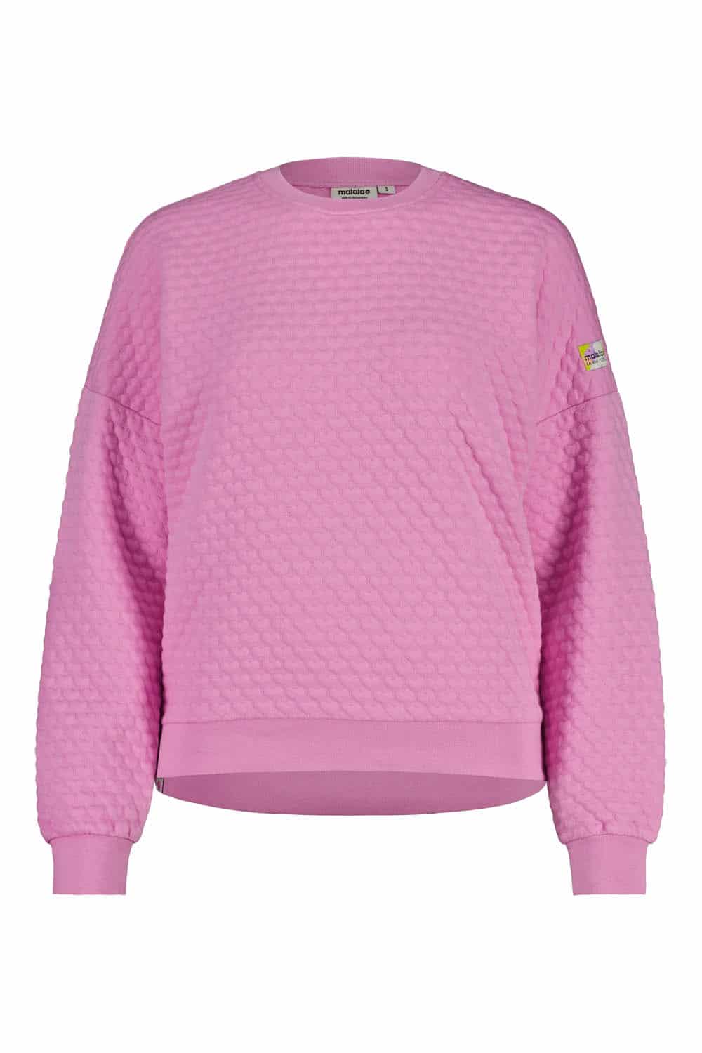 This casual round neck sweatshirt with dropped shoulders, slightly puffed sleeves and ribbed cuffs on the sleeve opening, round neck and hem is very comfortable to wear. Our Bubble Hearts Sweat is a special sweat fabric with knitted and padded 3D hearts that give the shirt a very unique look.