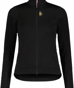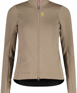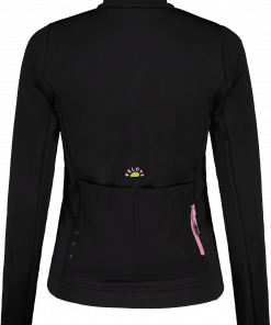 This newly developed jacket is made of windproof, warm, and stretchy Bike Stretch WB. The shape of the jacket is optimized for a perfect fit on the bike. The two-way zipper allows the jacket to be opened from the bottom for ventilation. Three large back pockets and an additional zippered pocket provide plenty of storage space. A reflective heart print on the back ensures visibility in traffic, while small VELOVE and MALOJA prints on the chest and above the center back pocket complete the design. The jacket can be perfectly combined with other styles.