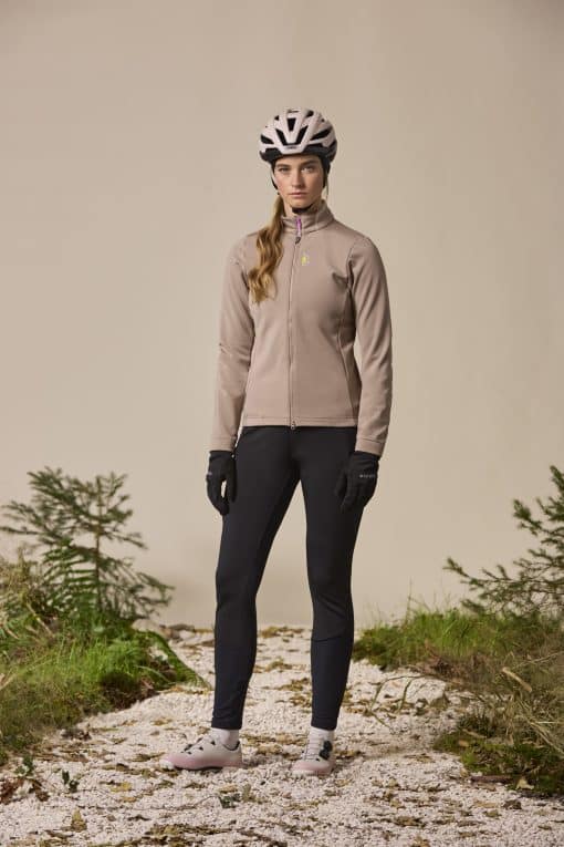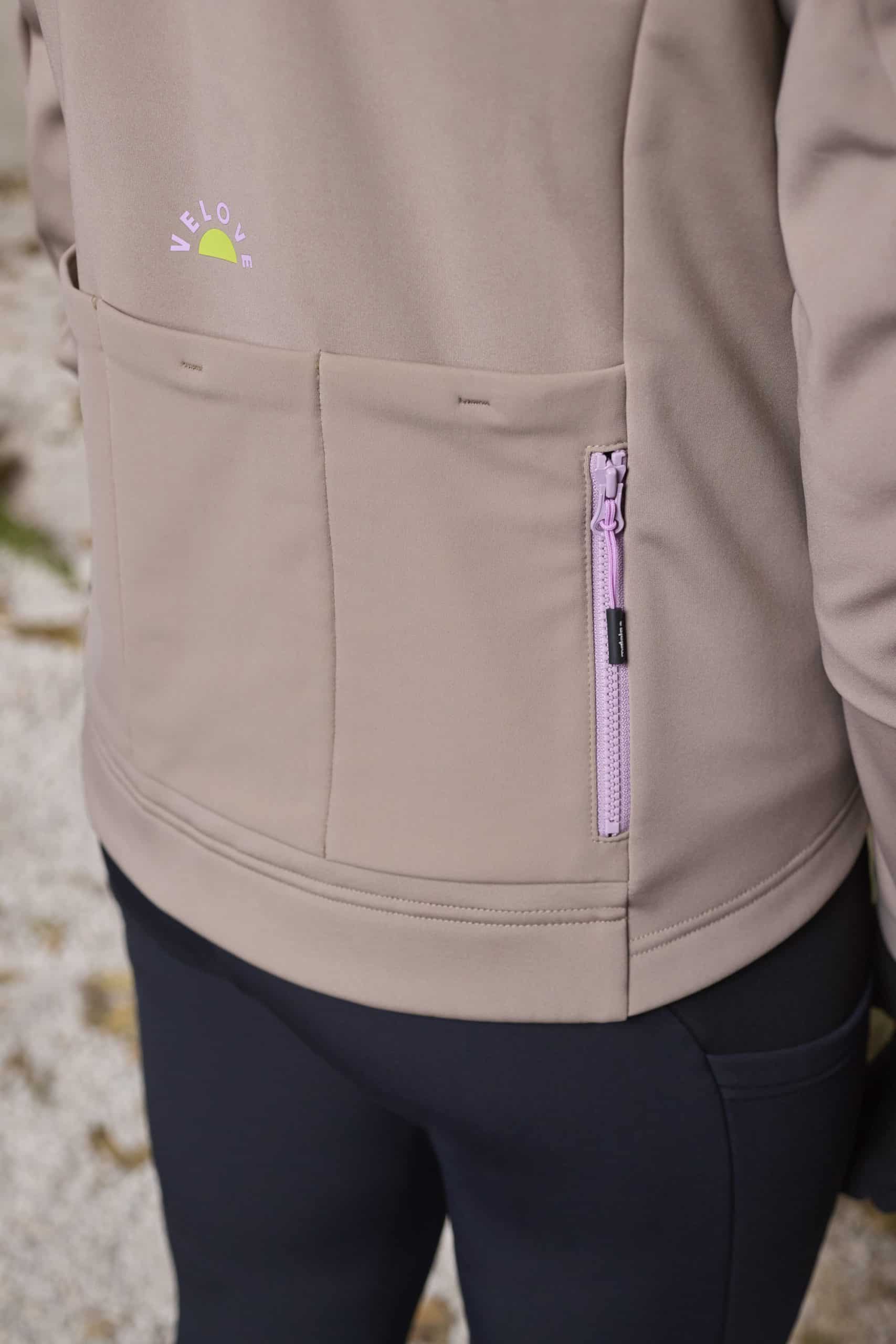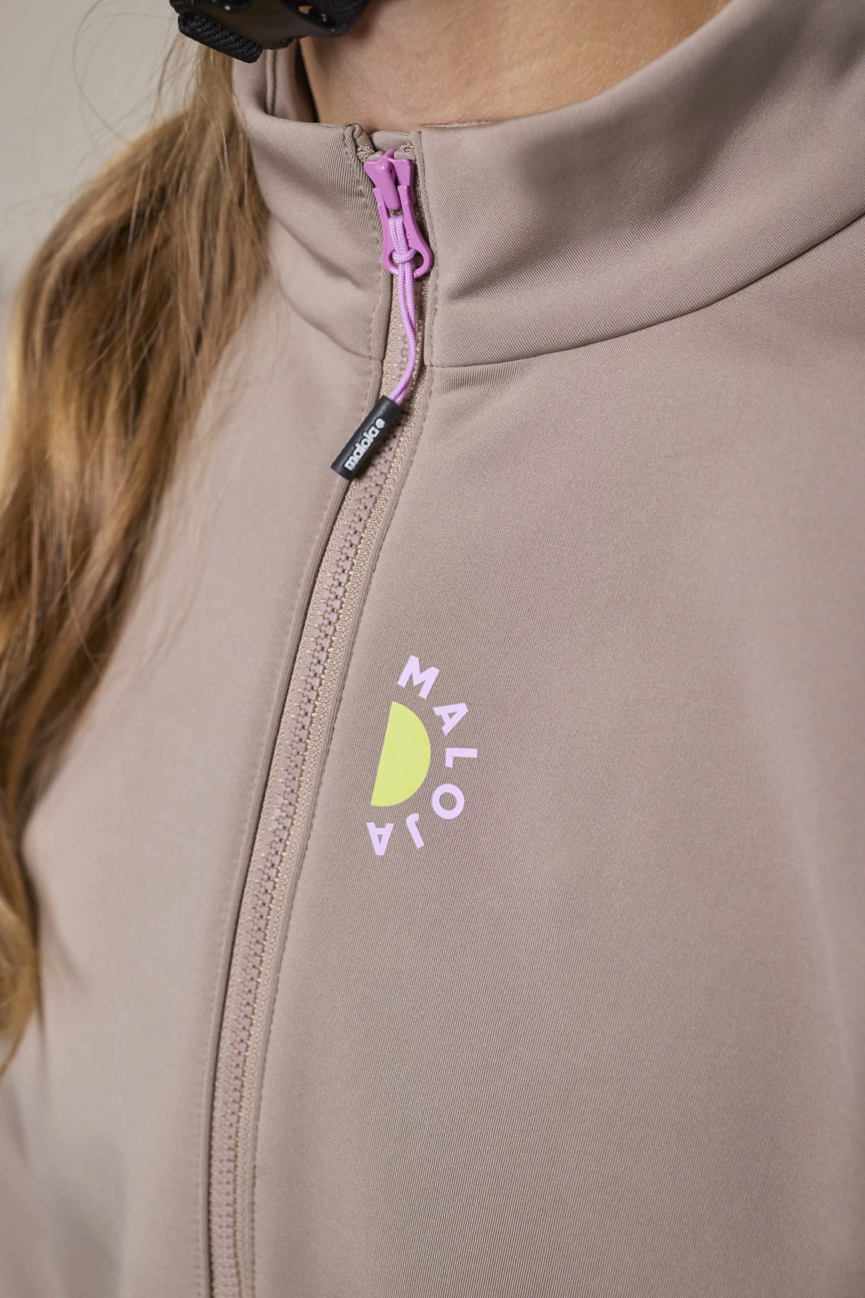 This newly developed jacket is made of windproof, warm, and stretchy Bike Stretch WB. The shape of the jacket is optimized for a perfect fit on the bike. The two-way zipper allows the jacket to be opened from the bottom for ventilation. Three large back pockets and an additional zippered pocket provide plenty of storage space. A reflective heart print on the back ensures visibility in traffic, while small VELOVE and MALOJA prints on the chest and above the center back pocket complete the design. The jacket can be perfectly combined with other styles.