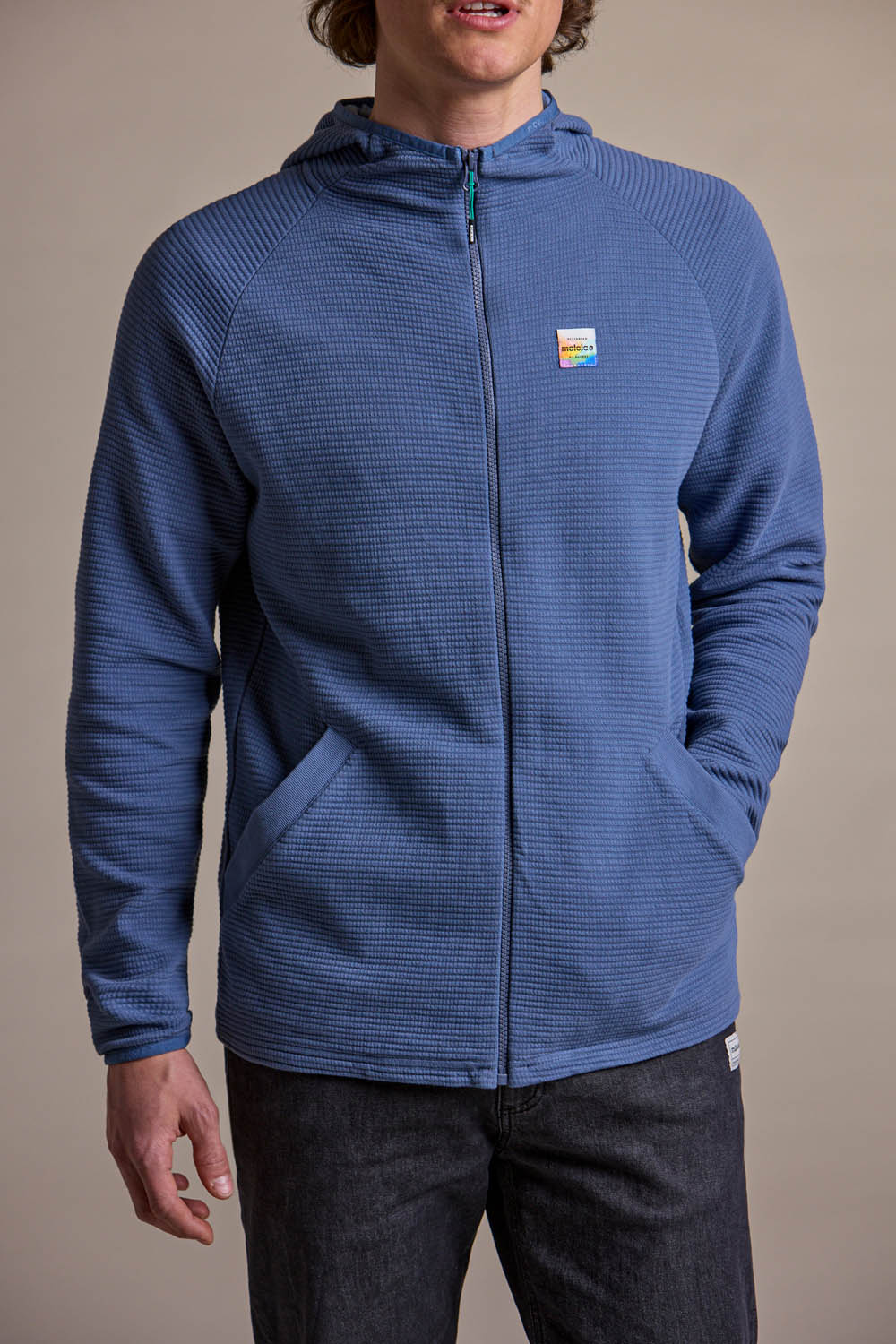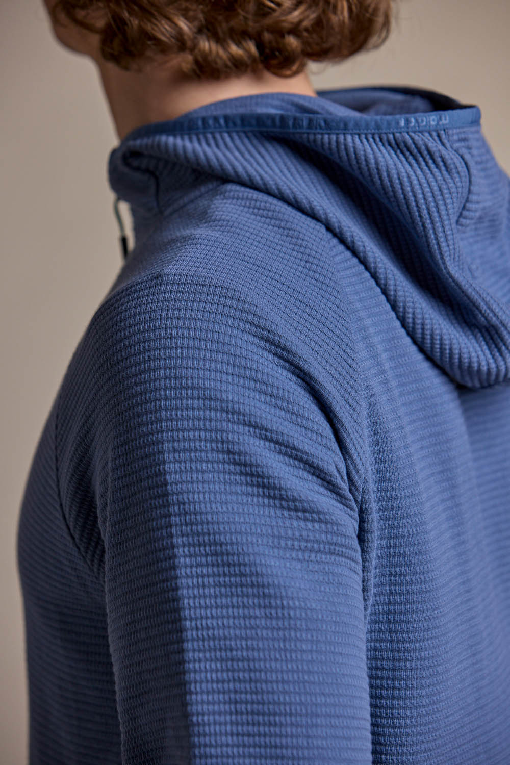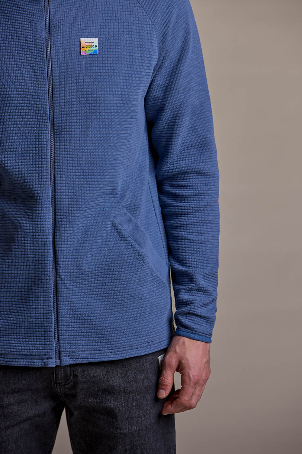 MarmolaM. is a casual hoodie jacket made from 100% organic cotton featuring a distinctive waffle-textured surface. The structured Grid Sweat fabric provides a soft feel, natural breathability, and a unique look.