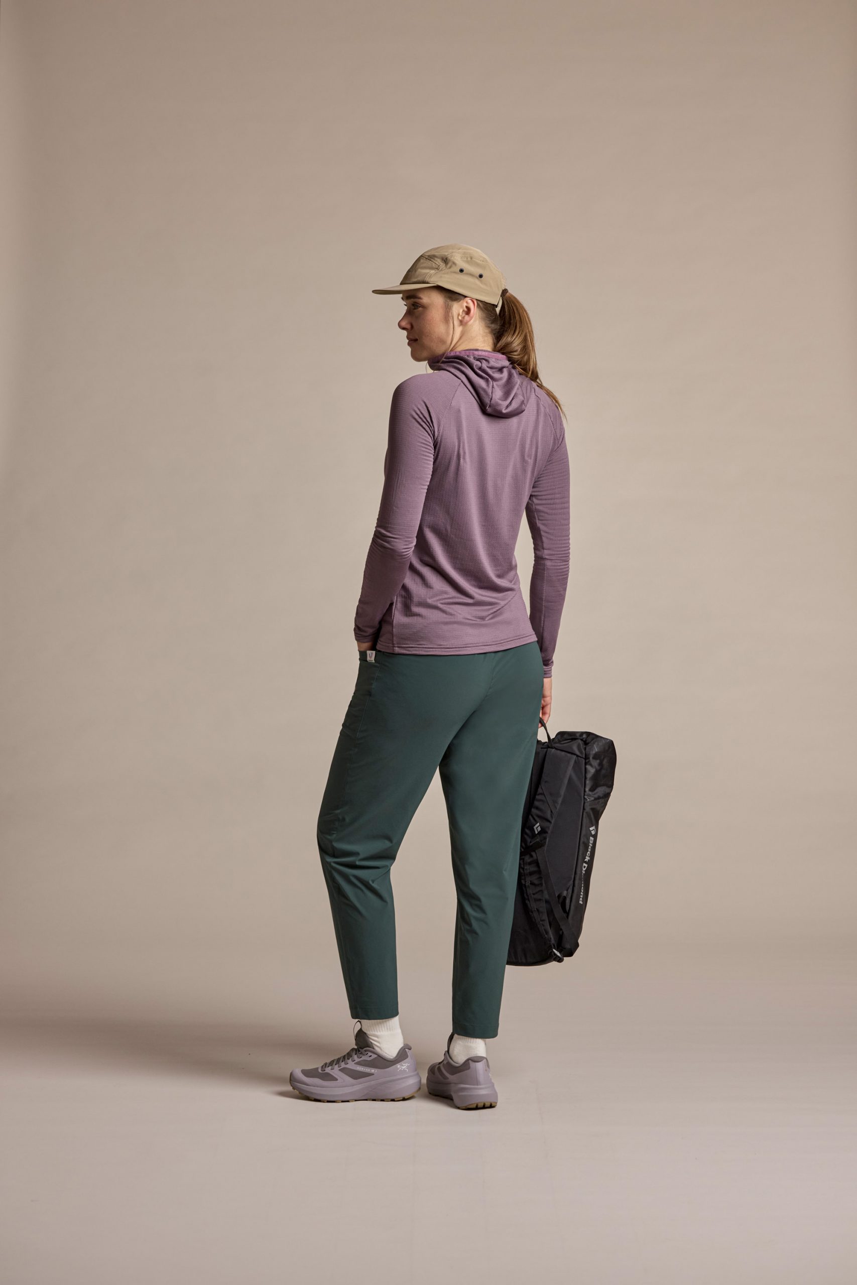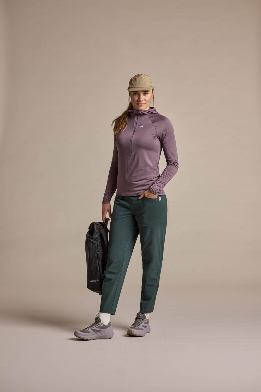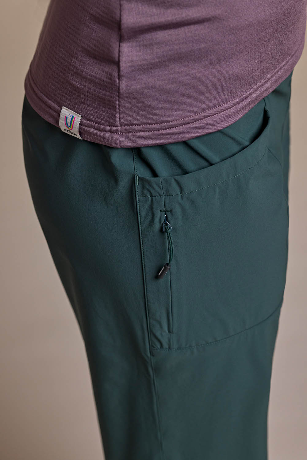 MusalaM. is built for motion – made from Double Stretch Light, a lightweight and durable performance fabric developed from recycled truck tires. With its 4-way stretch, quick-drying properties, and abrasion resistance, this pant is perfect for active adventures from city trails to mountain paths. Two large patch pockets plus a secure zip pocket for your phone or valuables add practical detail. Certified as a bluesign® PRODUCT, it meets the highest standards for environmentally conscious production.