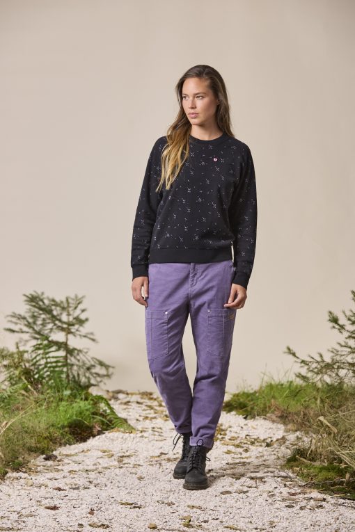 Comfortable sweatshirt made from cozy jersey flannel, a knit fabric made from organic cotton and recycled polyester. The slightly brushed surface makes the sweatshirt comfortable to wear. We have embroidered flowers and leaves for a special look. Ribbed cuffs, waistband, collar and raglan sleeves add to the comfort.