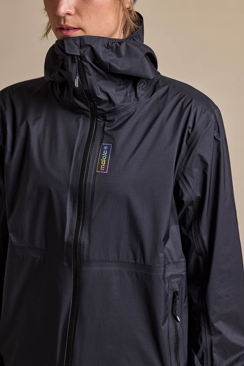 Das technische 3-Lagen-Material Superlight Shell mit Ripstop-Struktur schützt zuverlässig vor Wind und Regen (Wassersäule 20.000 mm) – selbst bei starken Schauern. Die dauerhaft wasserabweisende Imprägnierung ist PFC-frei. Vollständig getapte Nähte, reflektierende Details, eine ergonomisch geformte Sturmkapuze und höher angesetzte Seitentaschen für Rucksackkompatibilität runden die funktionale Ausstattung ab.
