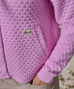 This cozy zip hoodie with a high-closing zipper and comfortable cuffs is simply great to wear. Our Sweat Bubble Hearts is a special sweat fabric with knitted and padded 3D hearts for a very special look. The overlapping back sections also create a special look.