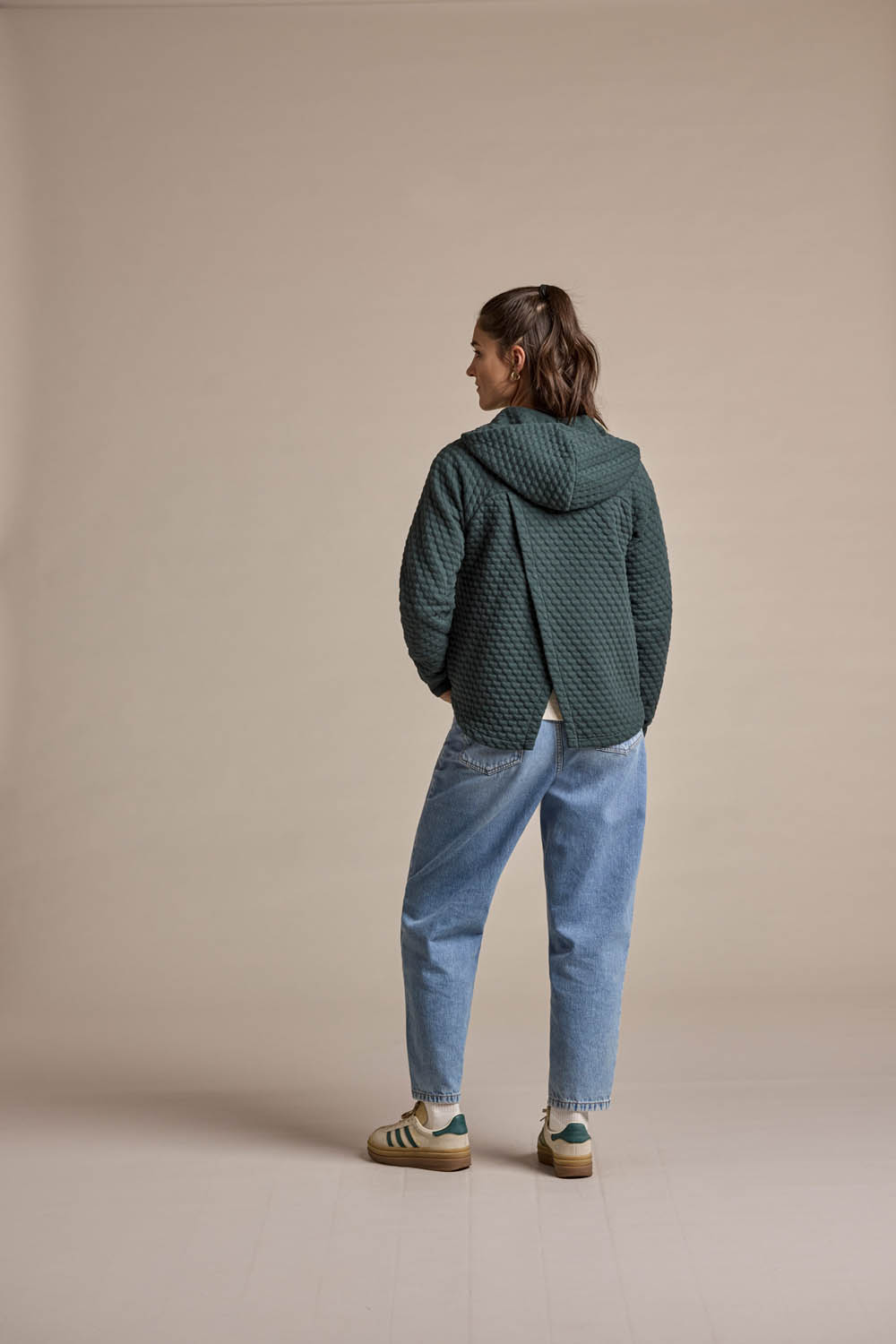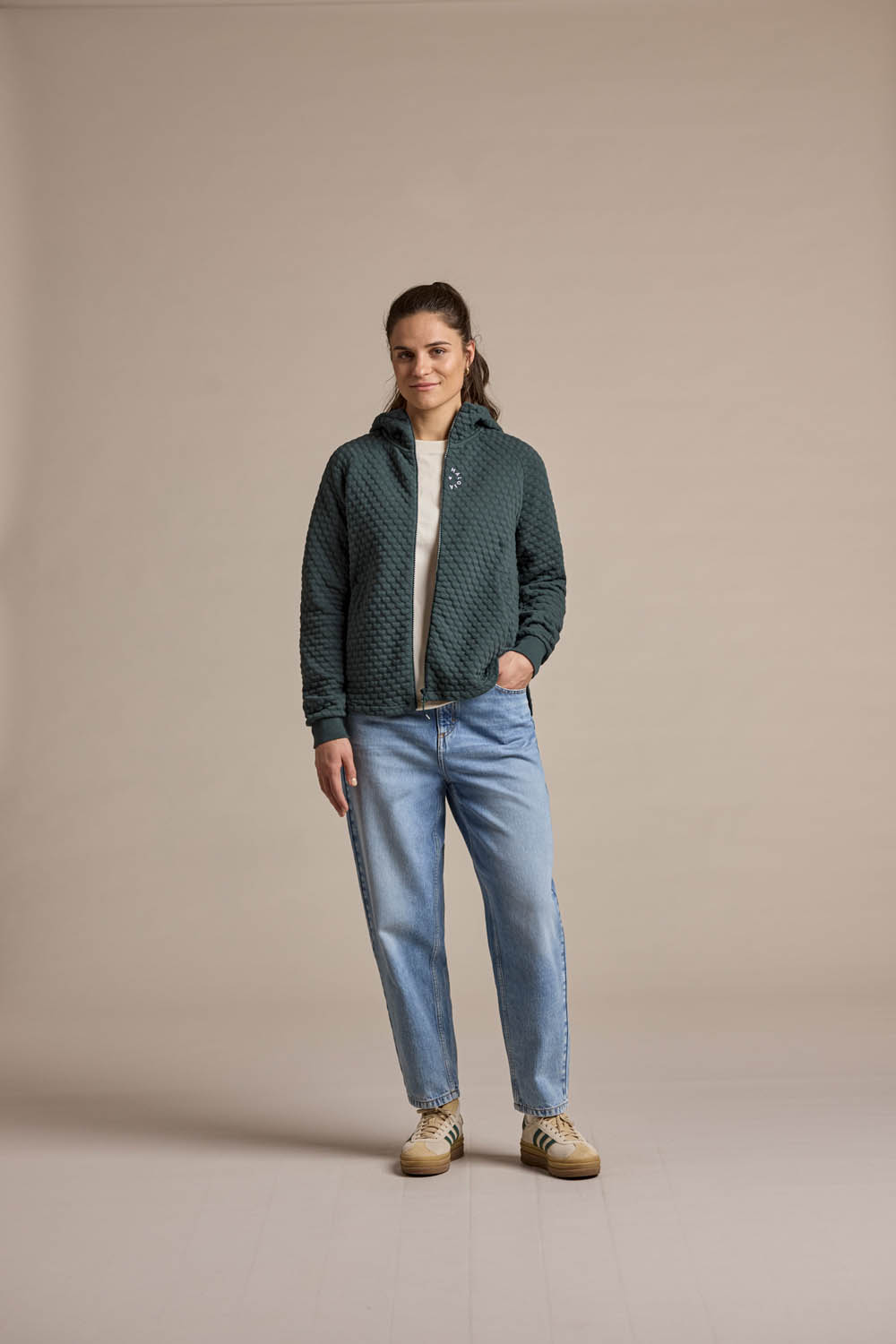 Die Kapuzen-Sweatjacke RundfjelletM. bringt Charakter und Gemütlichkeit in Einklang. Gefertigt aus unserem innovativen Sweat Bubble Hearts, überzeugt sie durch eine einzigartige Oberfläche mit eingestrickten, gepolsterten 3D-Herzmotiven. Die spezielle Struktur macht das Material nicht nur optisch, sondern auch haptisch zu einem echten Highlight.