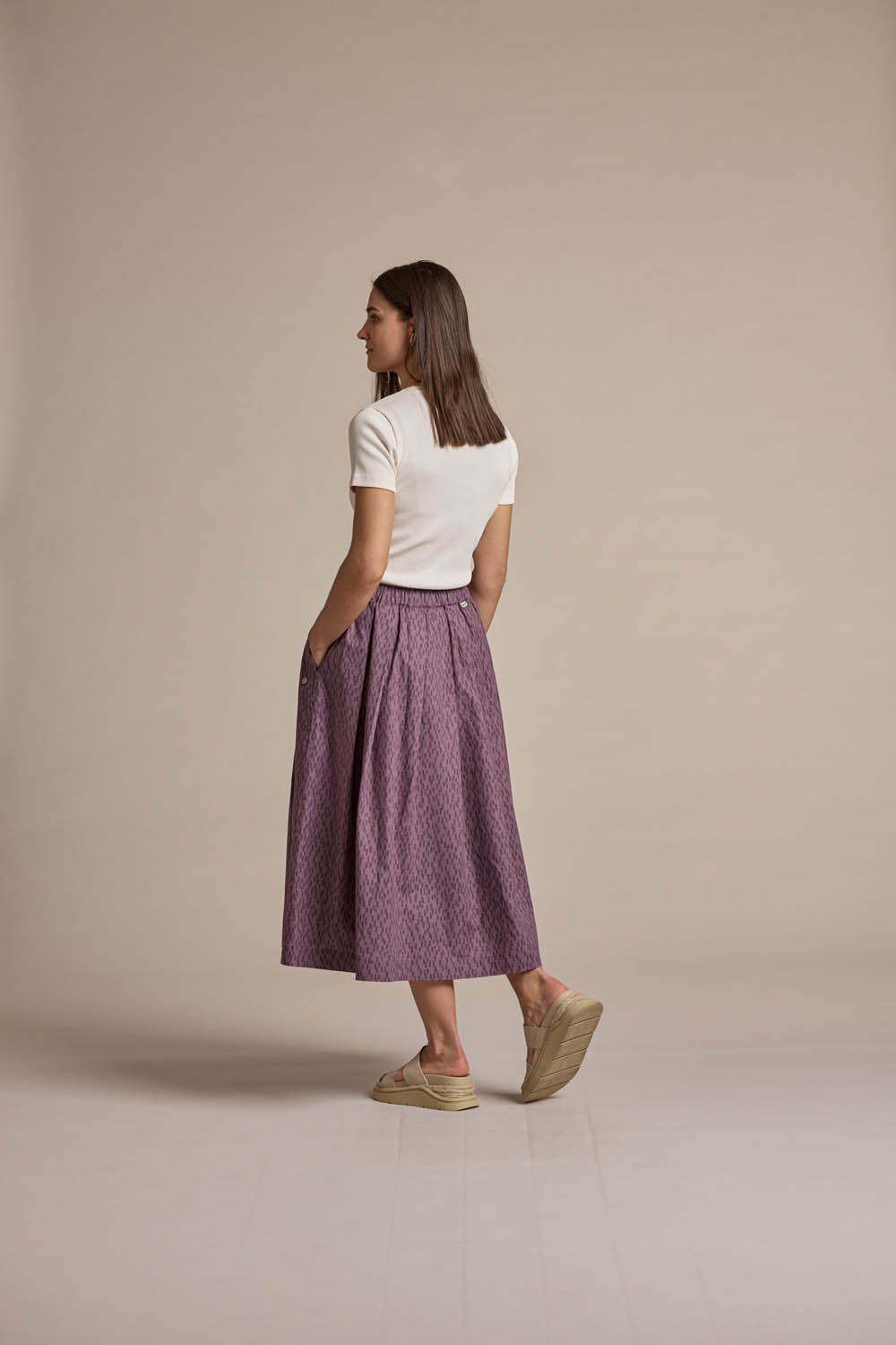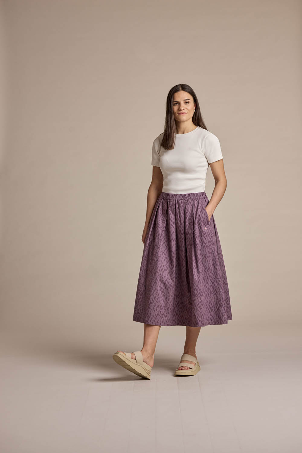 SmedrikM. is a lightweight skirt made from certified organic cotton – a feminine streetwear piece with a regular fit. The elastic slip-on waistband sits comfortably at the waist, while extra pleats below the band give the skirt its signature volume.