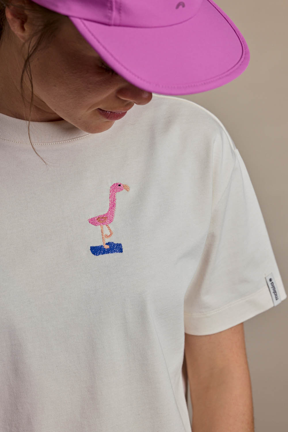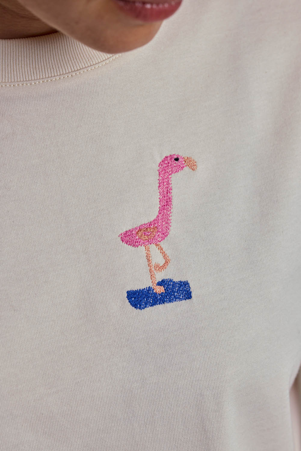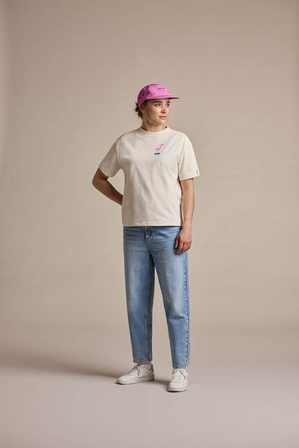 SpreeM. tee is a celebration of natural simplicity and honest craftsmanship. Made from untreated, undyed organic cotton, the heavy jersey retains its original character – complete with subtle cotton shell remnants and a naturally soft, earthy tone. Above the left chest, lovingly chosen embroidered designs reflect the Delighted by Nature theme of the collection, adding a subtle yet personal touch. With its relaxed fit and natural feel, this shirt is both comfortable and conscious.