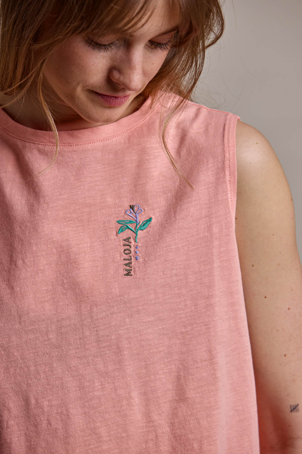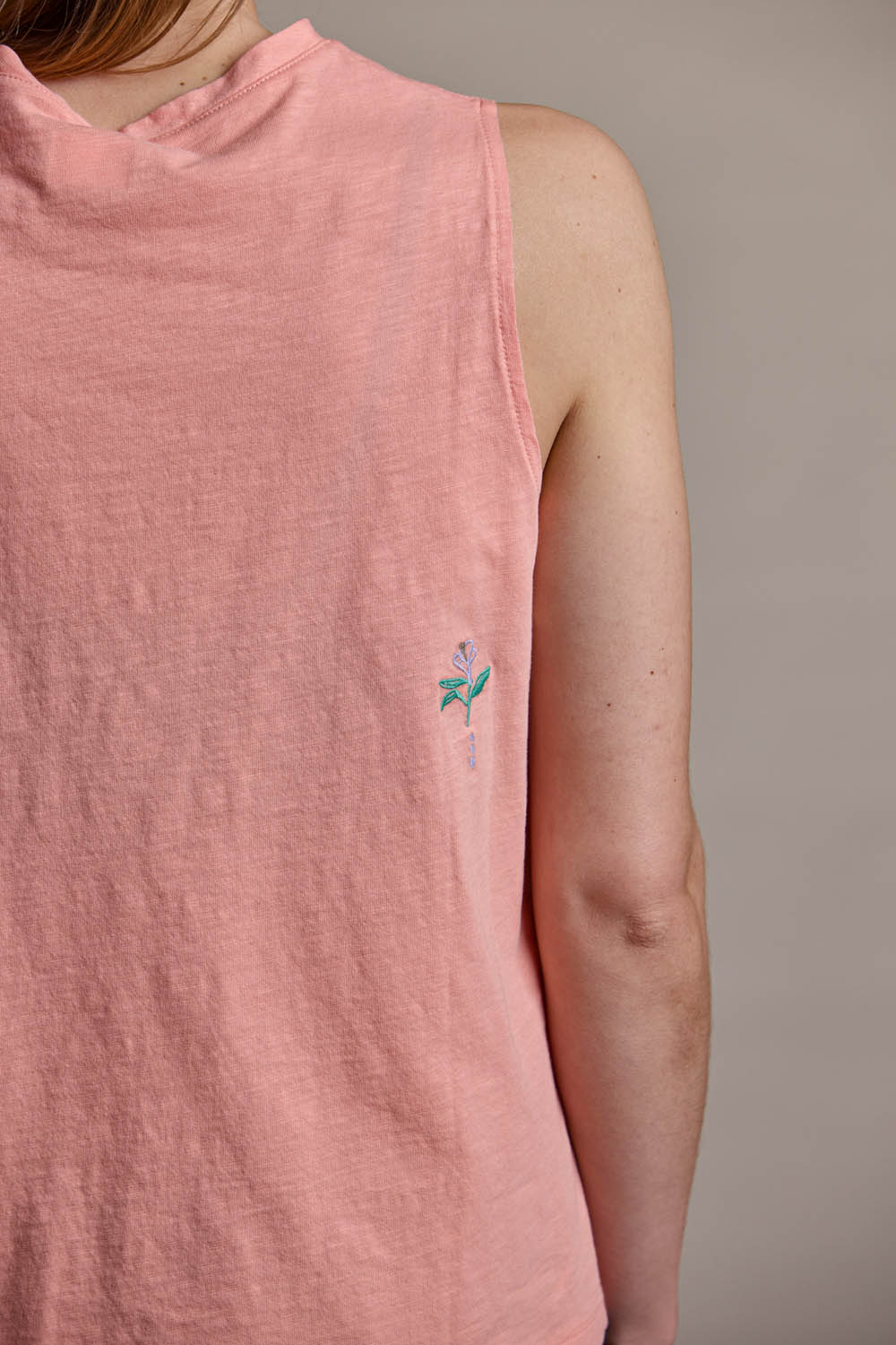 Das TaranakiM. Tanktop aus weicher Bio-Baumwolle vereint liebevolle Details mit einem natürlichen Tragegefühl. Unter der Brust und am Rücken setzen feine Irisblumen-Stickereien verspielte Akzente, die an sommerliche Blumenwiesen erinnern. Der Jersey Flamée sorgt mit seiner charakteristischen Struktur für eine lebendige Optik und angenehme Haptik. Die Farbpalette greift sanfte Töne auf und macht das Tanktop zu einem perfekten Begleiter für warme Tage.