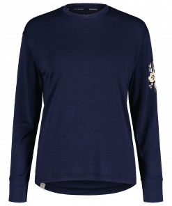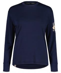 This comfortable merino and viscose longsleeve keeps you warm and dries quickly. The material has a natural feel, making it ideal as a second layer for climbing and all outdoor activities. The floral motifs on the left arm give the comfortable longsleeve a unique, feminine look.