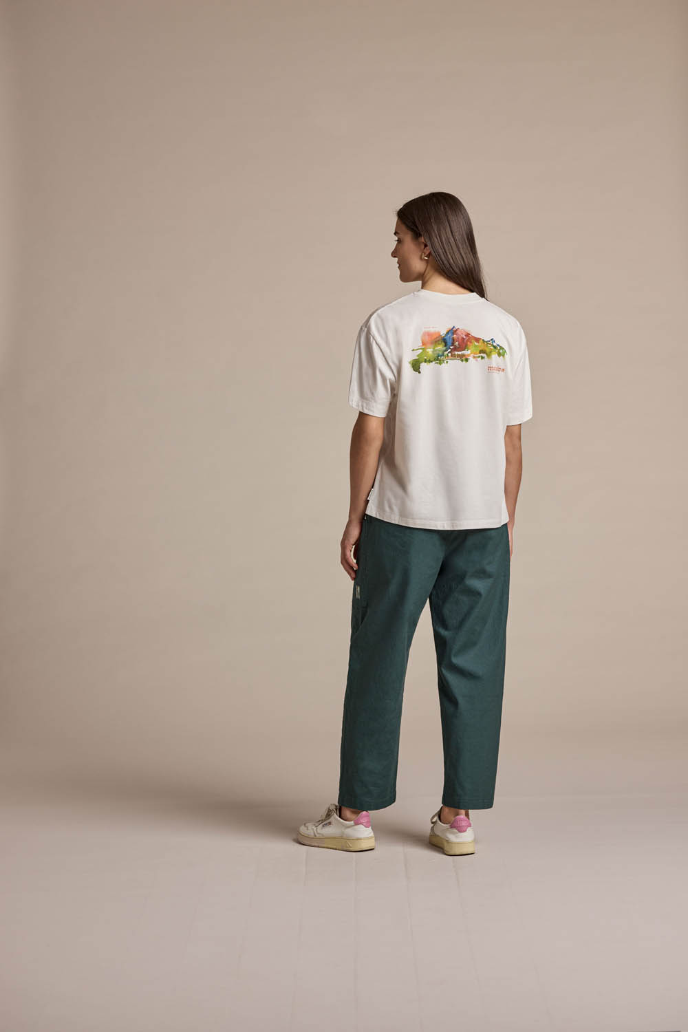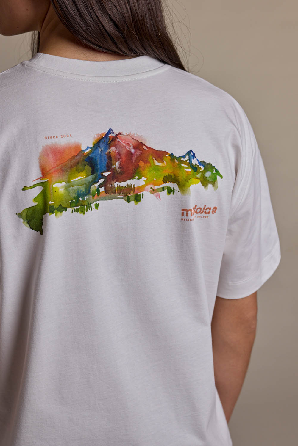 TswanaM. brings together artistic flair and relaxed streetwear style in a consciously made tee. Designed in a boxy, oversized fit with wide sleeves, dropped shoulders and a broad crew neckline, this T-shirt stands out with three distinct watercolor graphics on the back – themed “Forest”, “Bike” and “Mountain”. Crafted from soft single jersey in certified organic cotton, it offers a comfortable feel with breathable elasticity. A modern favorite for those who express their love for nature not only in what they do – but also in what they wear.