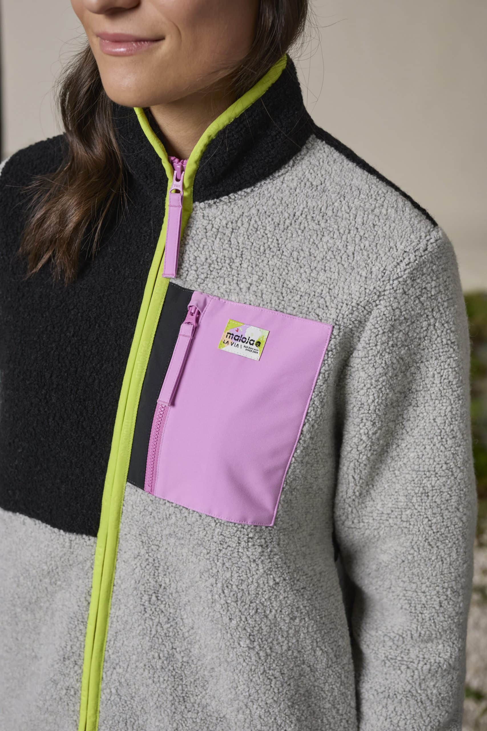 The VallettaM. jacket in a boxy cut is one of our favorite pieces, perfectly combining comfort and style. The Sheep Skin Fleece with recycled wool provides cozy warmth and, with its unique structure, resembles a sheepskin. With contrasting color details on the collar, hem, zipper and sleeves, as well as the modern color block design, the jacket quickly becomes an eye-catcher. Two zippered pockets on the side and a zippered pocket on the chest offer plenty of room for your essentials. The VallettaM. Teddy fleece jacket is the perfect companion on cold days – indoors and outdoors.