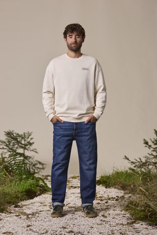 Casual, generously cut sweater with dropped shoulders and wide ribbing at the collar, cuffs and hem. The shirt is made from an undyed organic cotton-hemp blend that is very comfortable to wear. For our UNDYED products we completely avoid bleaching and dyeing the fabrics – two particularly water- and chemical-intensive steps in the textile finishing process. This means that the characteristic cotton hulls residues remain in the yarn and, together with the natural color tone, ensure that each product is unique, because: Nature sets the tone, and not just when it comes to wearing comfort.