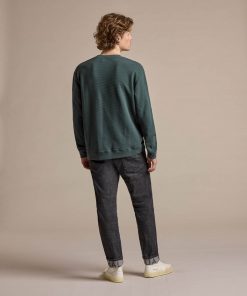 With its relaxed fit, slightly dropped shoulders, and crew neck with a wide rib, this style drapes naturally and comfortably. Cuffed sleeves and hem complete the clean silhouette and keep the shape in place.