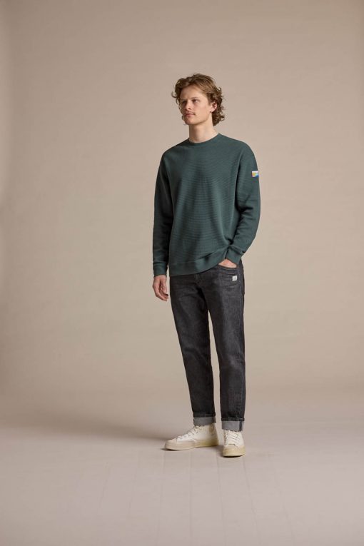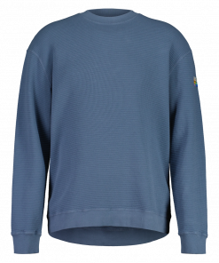 Der lässige Relaxed Fit mit leicht überschnittenen Schultern und der breite Rundhalsausschnitt mit markanter Kragenrippe sorgen für einen modernen Look und hohen Tragekomfort. Ärmel- und Saumbündchen unterstreichen den cleanen Stil und sorgen für Formbeständigkeit.