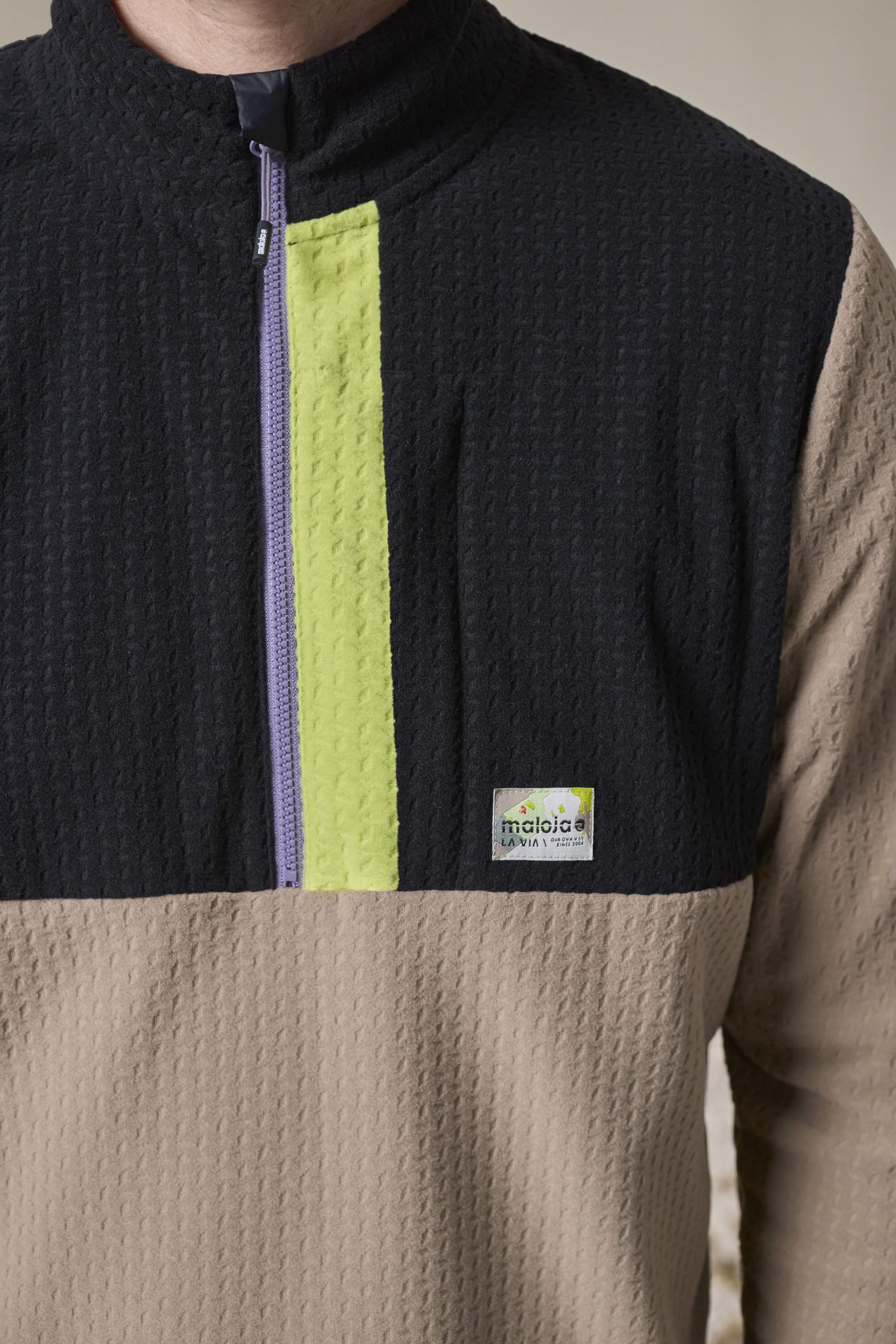 The half-zip mid-layer made from stretchy, quick-drying structured fleece offers good warmth and great comfort for ski touring, freeriding and outdoor activities. The color-contrasting strip at the opening to the chest pocket and the color-contrasting zipper create a casual look. The bluesign® PRODUCT label guarantees the responsible use of resources and the safe production and processing of synthetic and natural fibres.